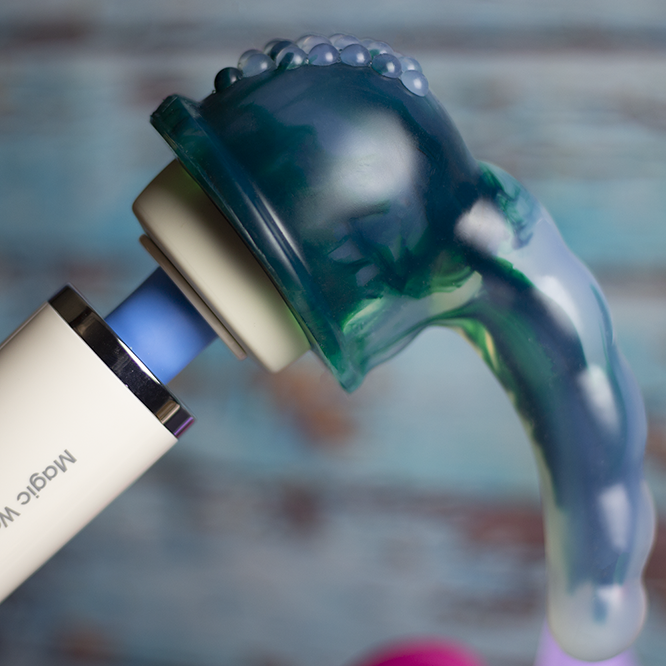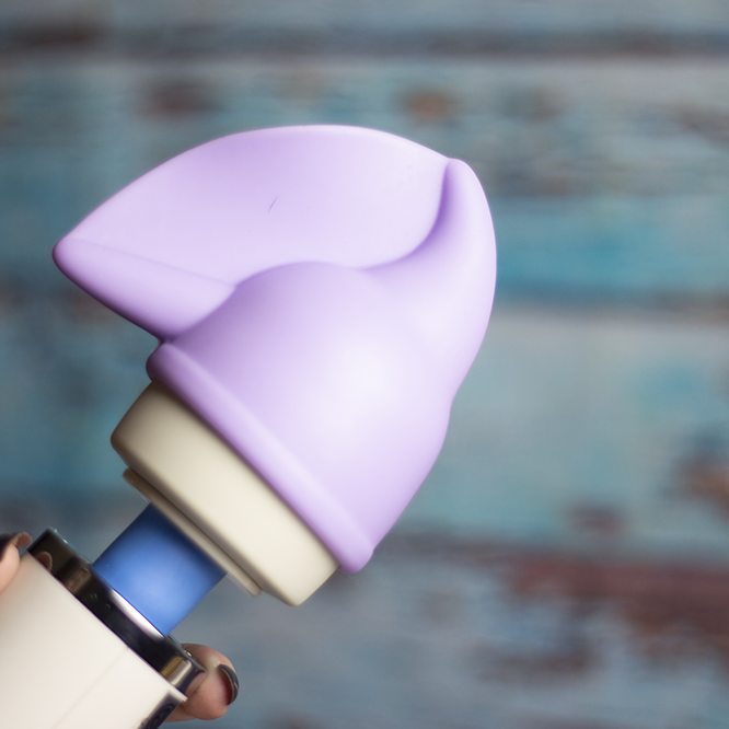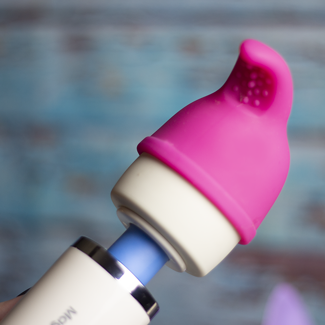 So what does a pinpoint girl, like myself, do to make broad stim wands a more palatable undertaking? Easy, I use inexpensive silicone wand attachments. That’s the beauty of wands, you see. You can be adventurous and try an assortment of silicone attachments. And to tell the truth, you can do so at a fraction of the cost of investing in multiple silicone toys. A few of my favorites are the Flutter Tip and Nuzzle tip by Wand Essentials. Oh, and don’t forget the truly magical Vixen Creations Gee-Whizzard.